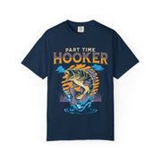 This Part Time Hooker Fishing T-shirt brings a grin to anyone who loves the water and a good laugh. The playful “Part Time Hooker” slogan reads like a fishing confession — worn by people who prefer the quiet tug of a line and the patient rhythm of casting. It feels lived-in from the start: soft garment-dyed cotton with a relaxed fit that sits comfortably after a long morning on the dock or an evening swapping stories by the boat.